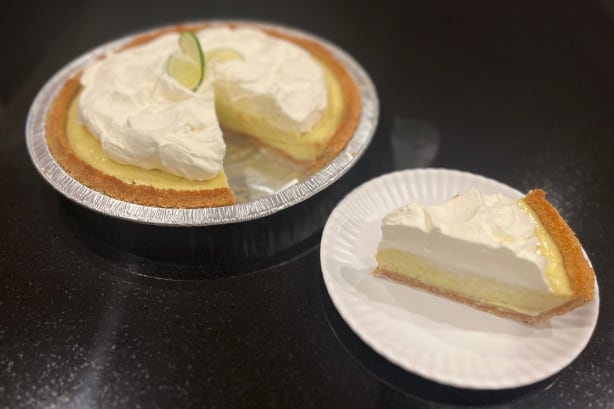 Graham cracker crust, fresh squeezed limes and whipped cream