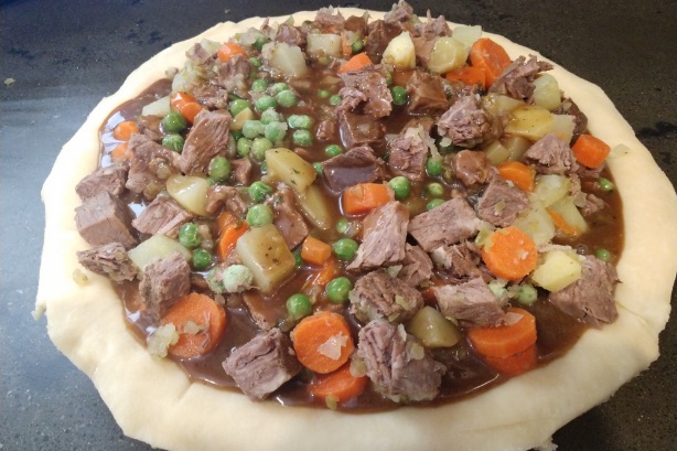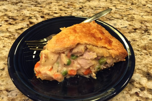 Turkey, carrots, peas, onion in a rich gravy